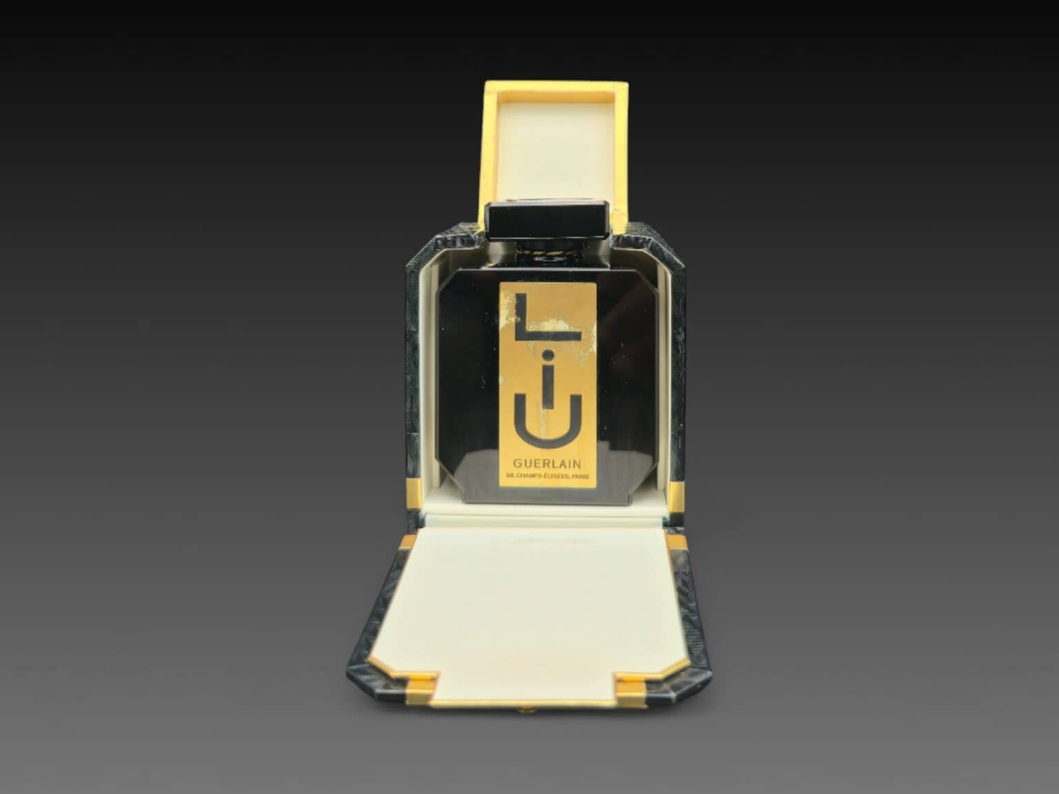 124. Auteur : Guerlain| Titre : LIU édition limitée n°0908 | Signature : — | Matériaux : verre | Dimensions : — | État : très bon état
