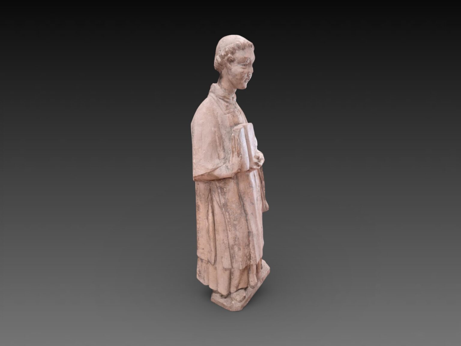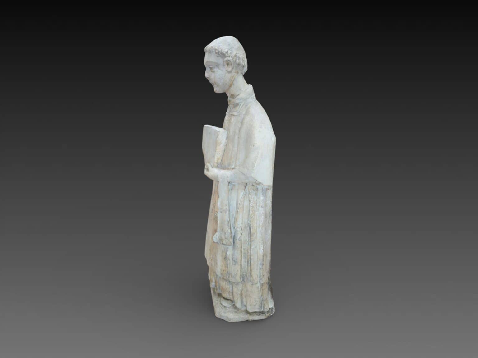 166. Travail du Xve siècle, statue d’un moine en pierre calcaire