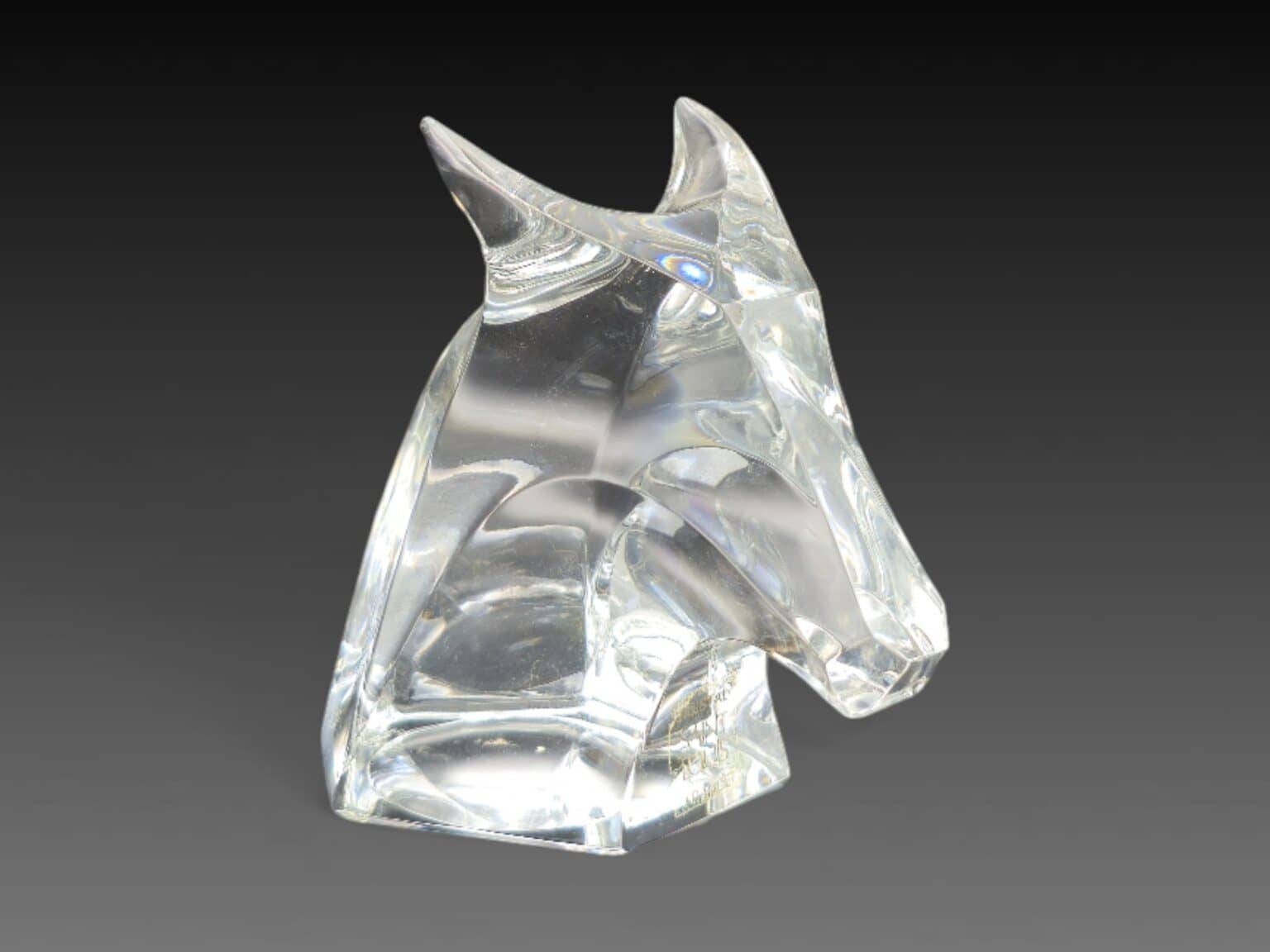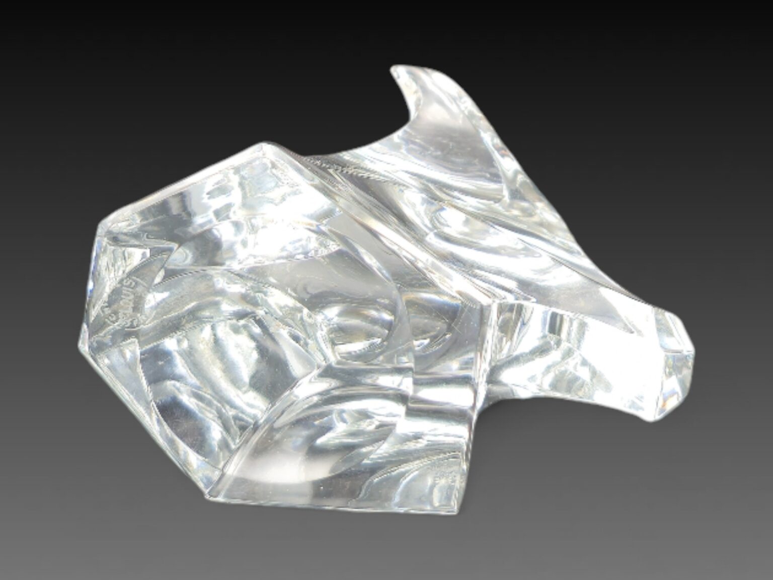 22. Auteur : Saint Louis | Titre : tête de taureau | Signature : étiquette et estampille | Matériaux : cristal | Dimensions : 11 x 11 cm | État : très bon état