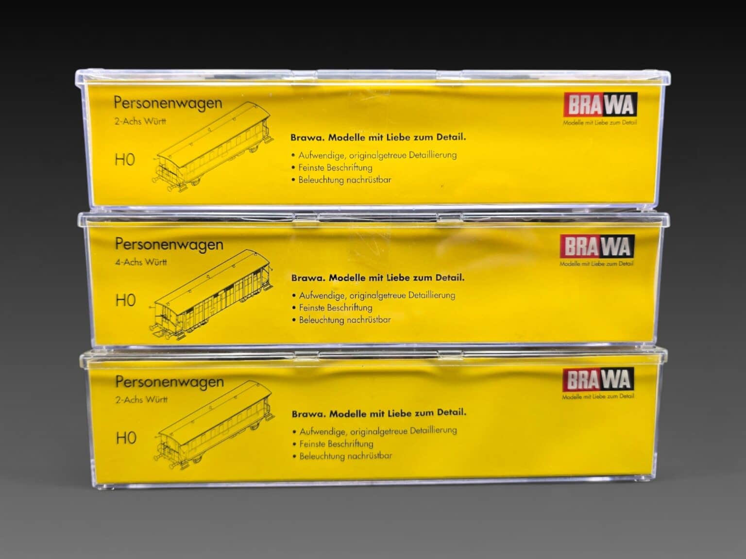 325. Auteur : Brawa | Titre : trois wagons 2169 2334 2168| Matériaux : | Dimensions : | Signature : | État :