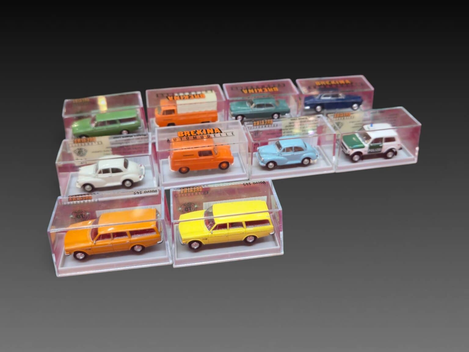 374. Auteur : Brekina | Titre : dix voitures miniatures marques diverses| Matériaux : | Dimensions : | Signature : | État :