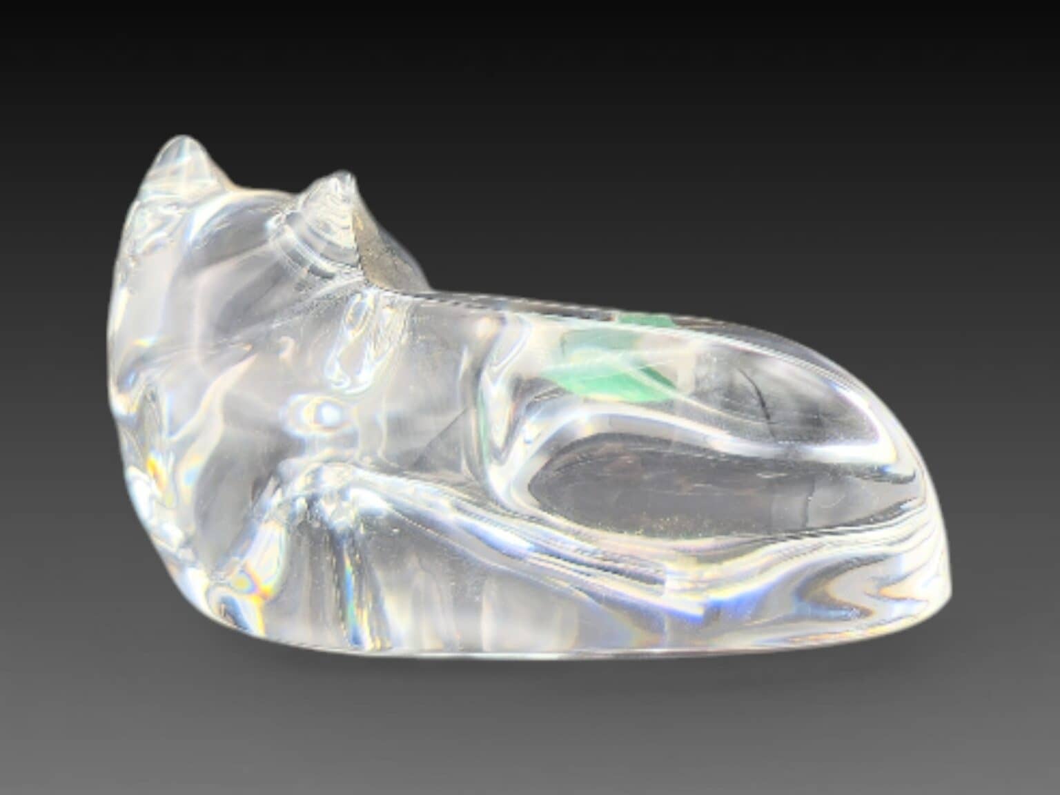 46. Auteur : Val-saint-lambert | Titre : chat | Signature : estampille sous la base | Matériaux : cristal | Dimensions : 10 x 4 cm | État : très bon état