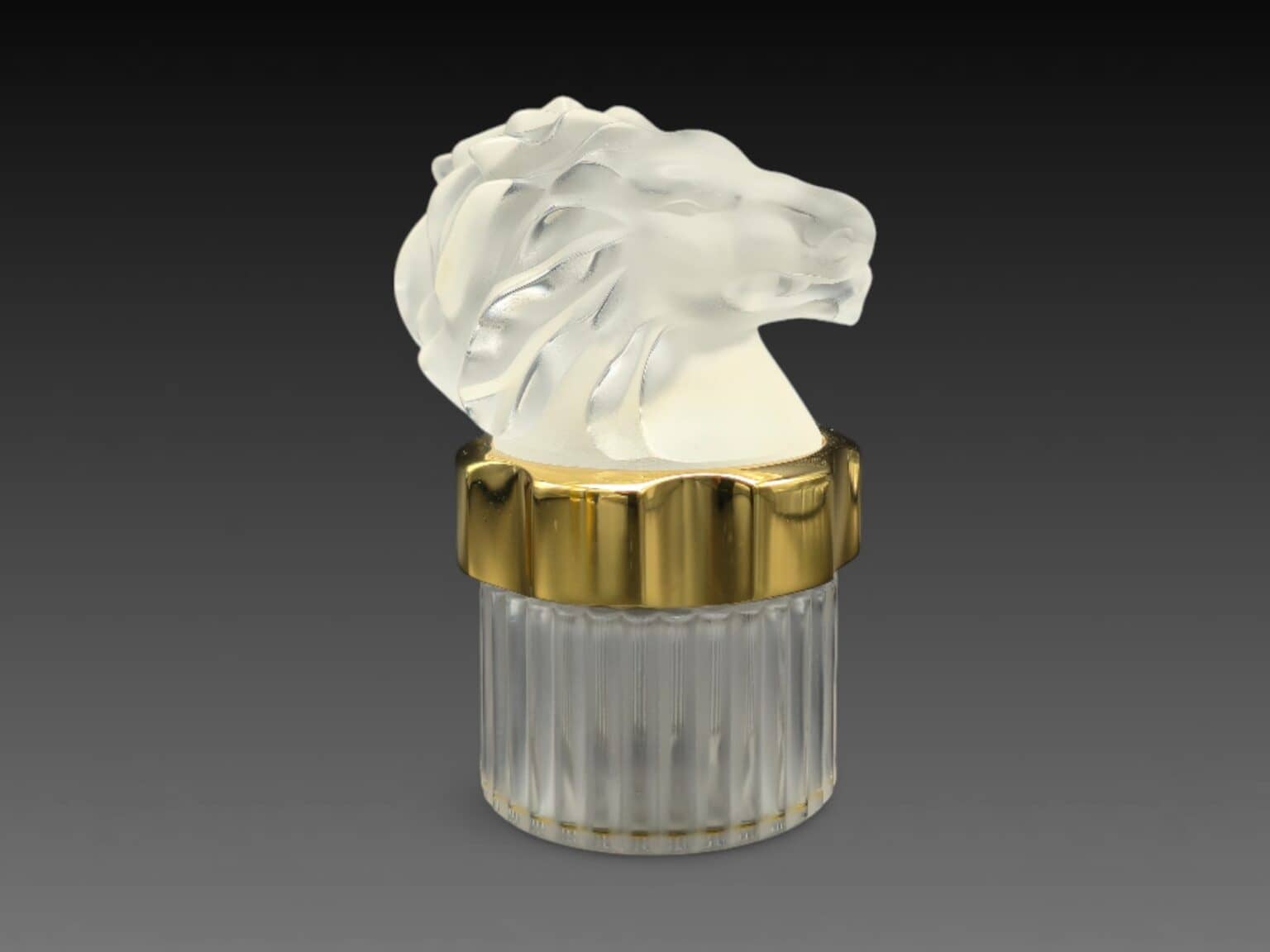 71. Auteur : Lalique parfums | Titre : flacon à tête de lion | Signature : — | Matériaux : cristal dépoli | Dimensions : — | État : très bon état