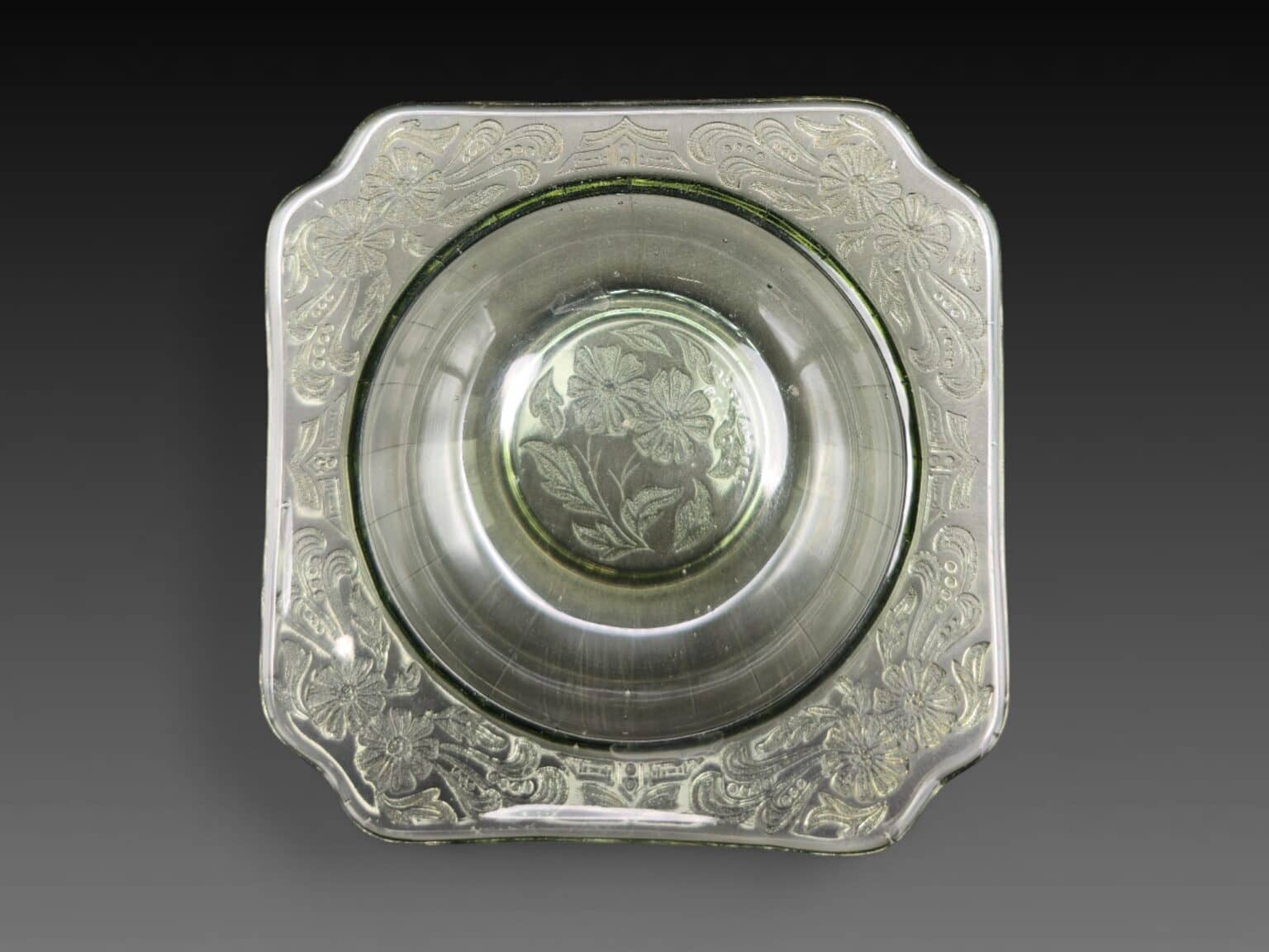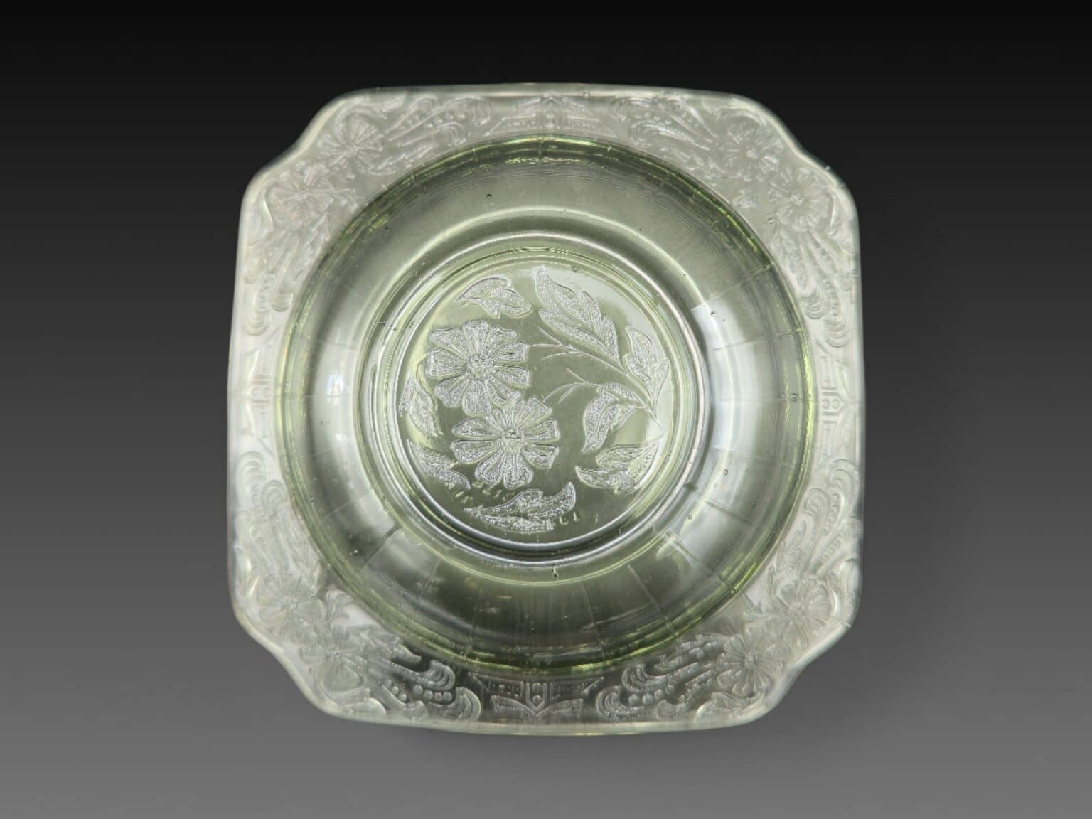 2. Auteur : Val Saint Lambert | Titre : coupelle à motifs floraux | Signature : signé en relief | Matériaux : verre | Dimensions : 13 x 3 cm | État : très bon