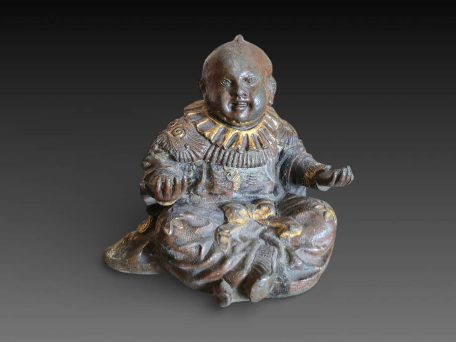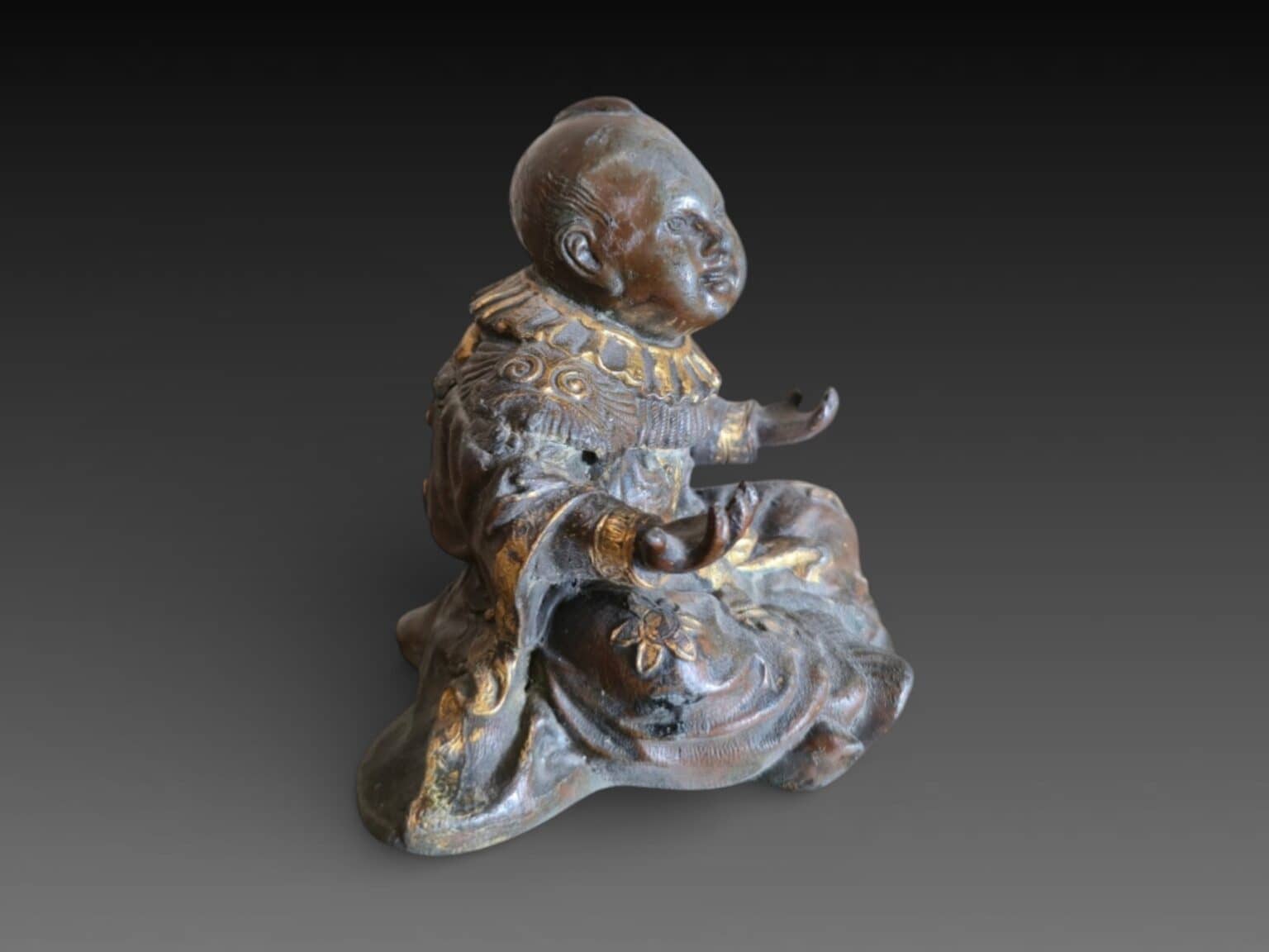 Japon, statue représentant un enfant, alliage métallique, 11 cm
